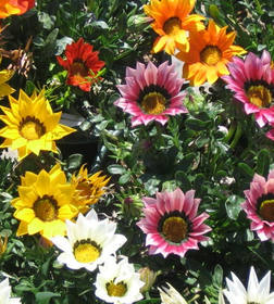 Gazánie je jednoletka s požadavky na slunce a dostatek vody u kořenů. Dorůstá do výšky 20 cm. Kvete od června do září barevnou směsí – žlutá, oranžová, hnědá. Gazánie je vhodná k umístění do skalky.