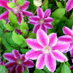 Clematis Umístění Plaménku, Clematisu Plamének neboli Klematis, též Clematis, je velkokvětá popínavá dřevina. Dorůstá do výšky až 3 metry, kvete v období července až srpna. Květy clematisu jsou podle odrůdy bílé, růžové, karmínově červené, fialové, blankytně až tmavě modré, také dvoubarevné nebo proužkované. Průměr květů clematisu je 5 až 10 cm. Clematis má rád